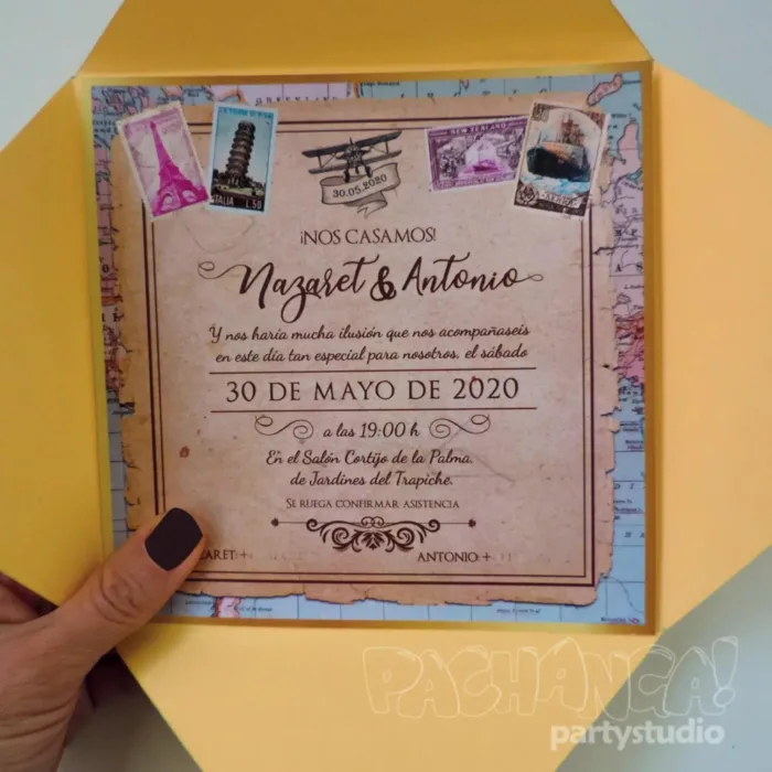 Las invitaciones se entregan montadas / manipuladas para que solo tengas que ocuparte de repartirlas a todos tus seres queridos y ¡Que empiece la cuenta atrás!