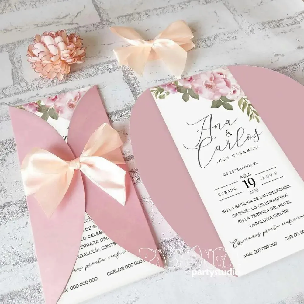 Las invitaciones se entregan montadas / manipuladas para que solo tengas que ocuparte de repartirlas a todos tus seres queridos y ¡Que empiece la cuenta atrás!