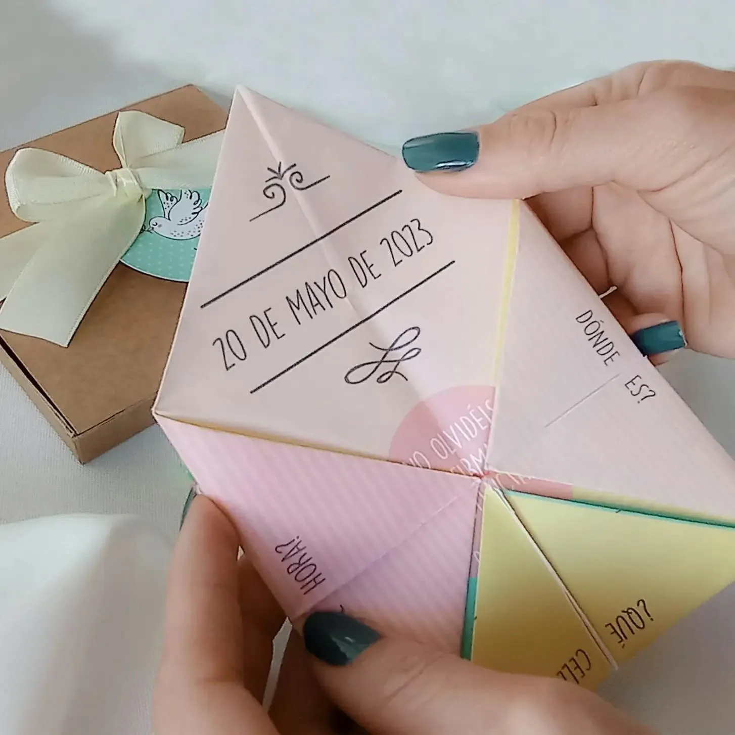 Las invitaciones se entregan sin montar / manipular, no te preocupes es muy fácil, te mandamos las instrucciones y siempre te ponemos un ejemplo, de todas formas si lo deseas tienes la opción de recibirlas totalmente montadas por un coste adicional de +0.95€/Unidad.