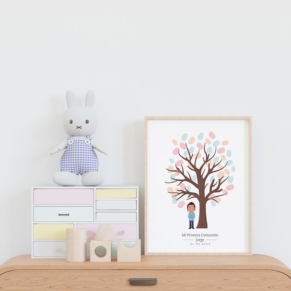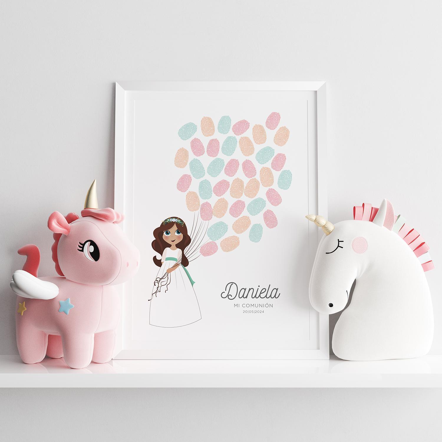 Coloca la lámina en la entrada de la celebración e invita a todos a dejar su huella a la vez que van dando forma a este bonito cuadro que puedes usar después para decorar la habitación de tu peque.