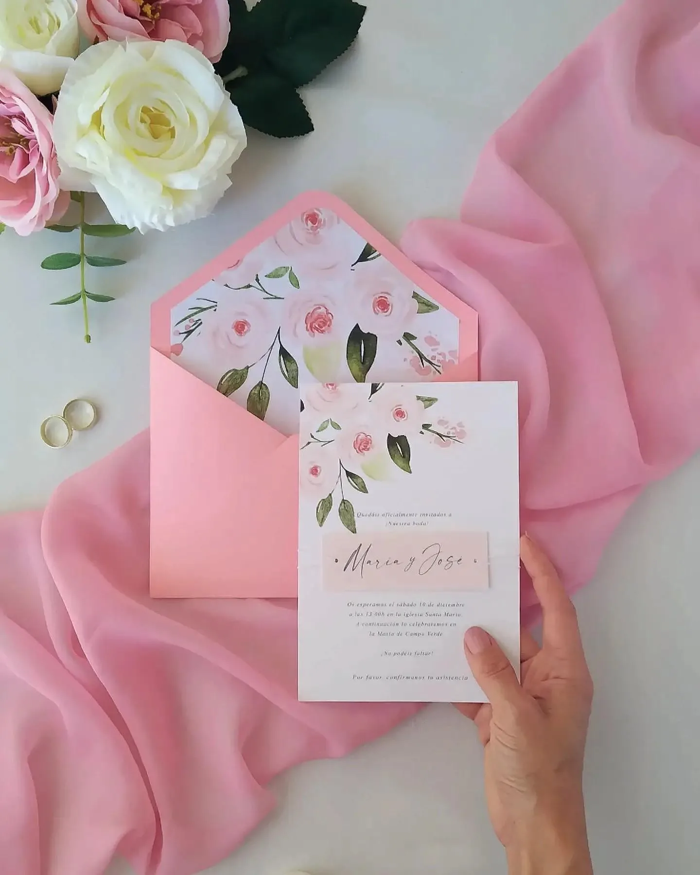 Nos inspiramos en la delicadeza de las rosas, en su textura de terciopelo y en la fragilidad de sus pétalos para crear esta diseño tan pink pensado para aquellas bodas románticas de primavera.