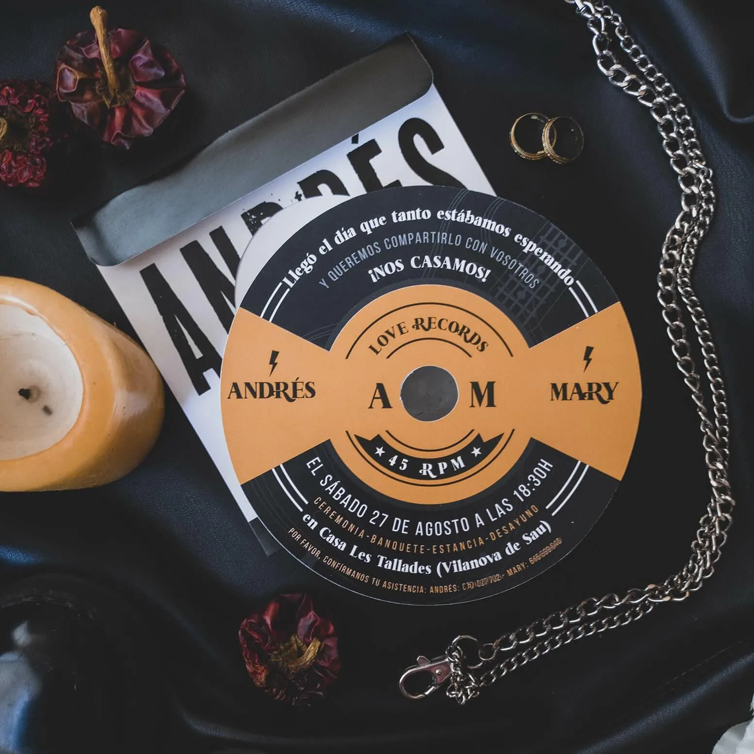 ¡Hell yeah! Llegó nuestra invitación más rockera para dejar a todos con la boca abierta. Simulamos un disco de vinilo ¡con estuche y todo! Anuncia la gran noticia de una forma súper original que no pasará desapercibida. ¡Una pasada!
